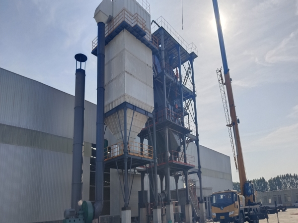 原料經(jīng)過電子秤進入到皮帶輸送機中,由全封閉的提升機將物料入到五孔碾磨制砂機內(nèi)進行破碎處理,再由空氣篩對破碎后的物料進行篩分處理,篩分后的較大物料會返回五孔碾磨制砂機中進行二次破碎,符合要求的砂子則進行裝載外運;篩分過程中的粉塵會經(jīng)粗細粉分離機進入到布袋收塵器中,而其中較大的粗顆粒會在粗細粉分離機的作用下,按需求在成品砂中進行回摻,細粉塵將通過風力進入到布袋收塵器再次回收利用。